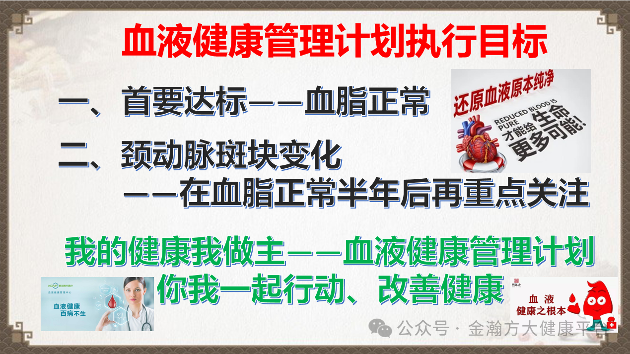 其次,为这个目标的达成,我们要准备两项检测:三个月一次的血脂检测,半年到一年一次的颈动脉斑块检测;用这个检测指标,来监测自己健康的变化,不断修正干预方式;